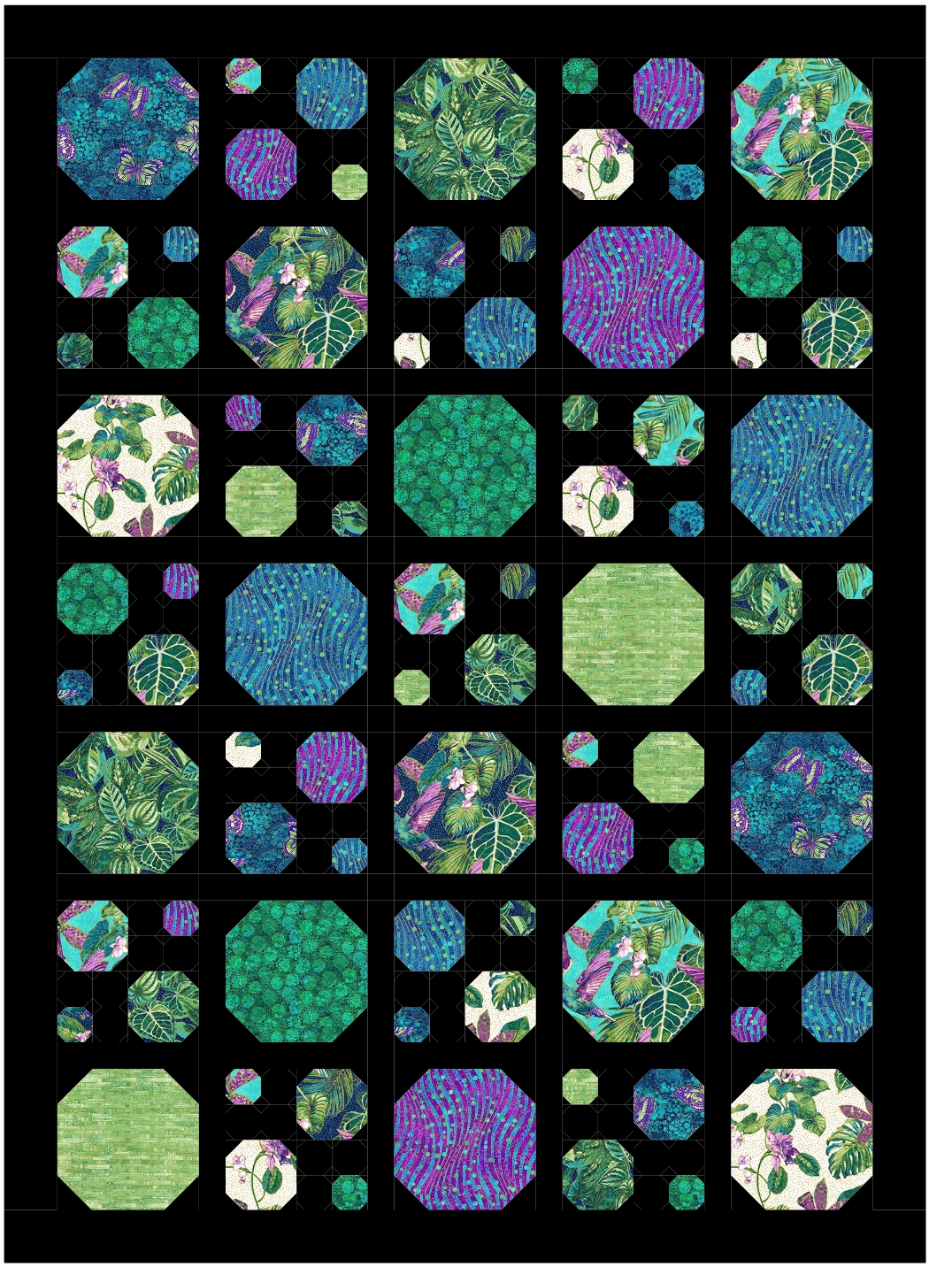 Fat Quarter friendly pattern, perfect to feature large print fabrics. Snowball blocks in three sizes, plus a fun layout make a striking quilt that's perfect for beginners. Four size options. Creative Grids Folded Corner Clipper Tool recommended, but not required.