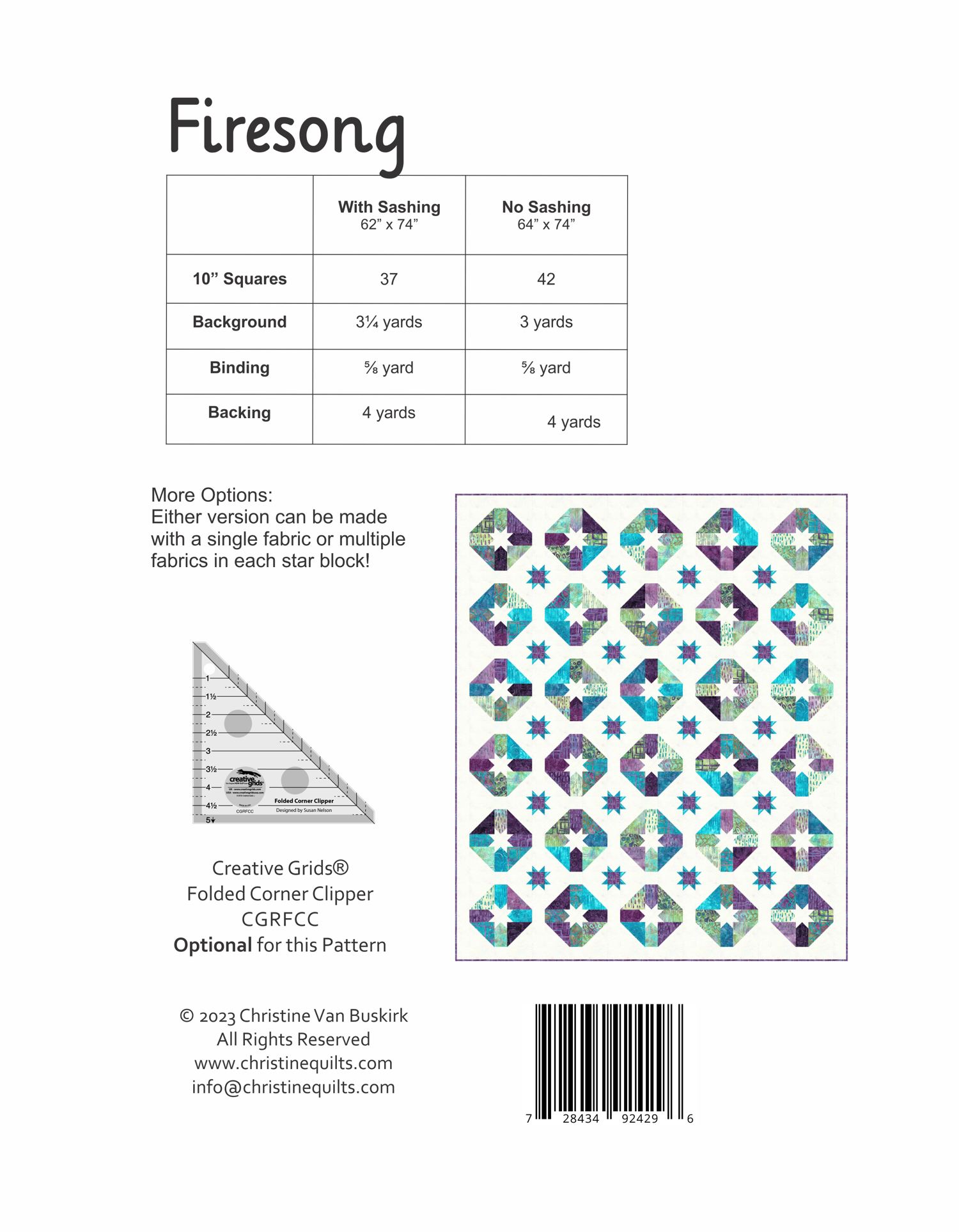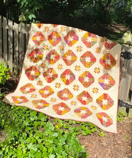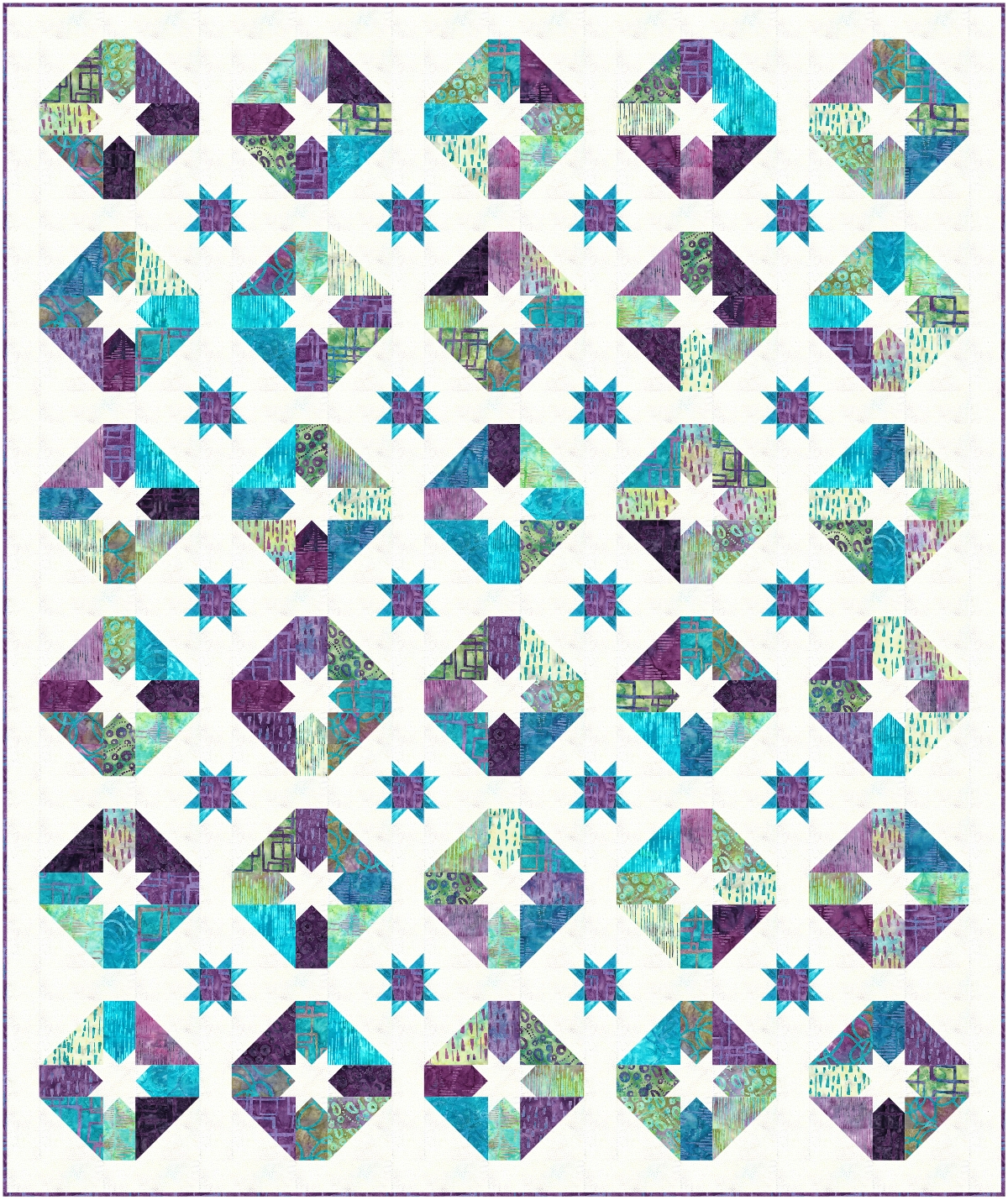 The perfect pattern for 10" squares! Two lap-size quilt options, one with sashing, one without. For even more variety, choose either single-fabric blocks or multi-fabric blocks.