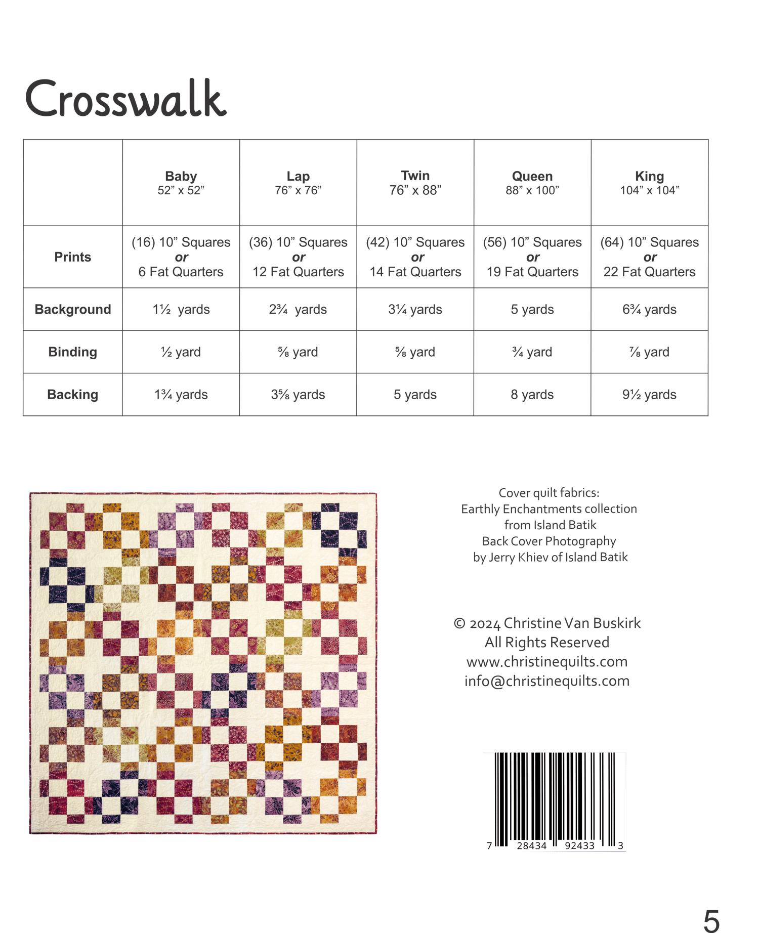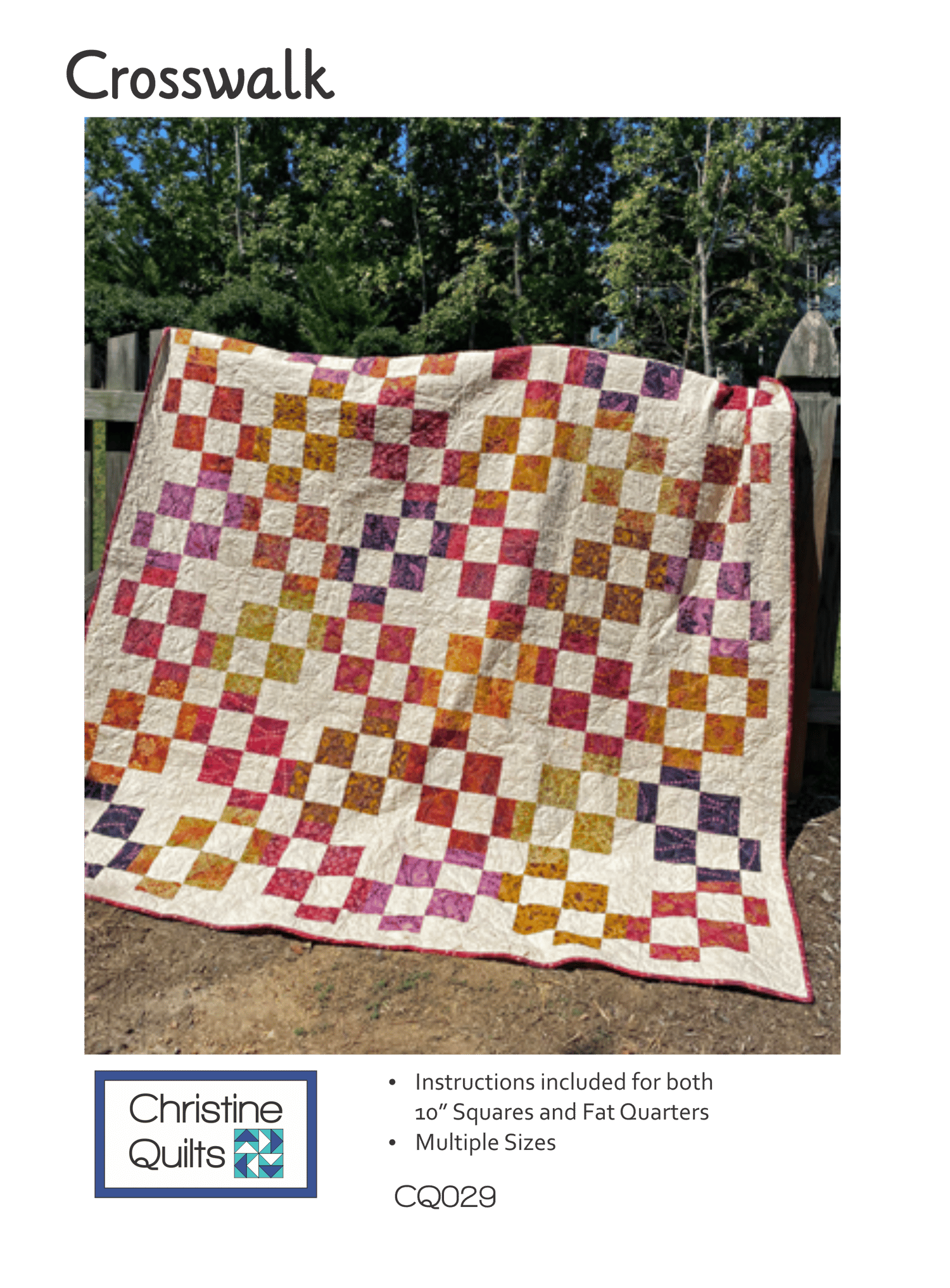 Have a collection of 10" squares or fat quarters? This pattern is perfect - easy piecing, and 5 options, from Baby to King sizes. No special tools or templates required.